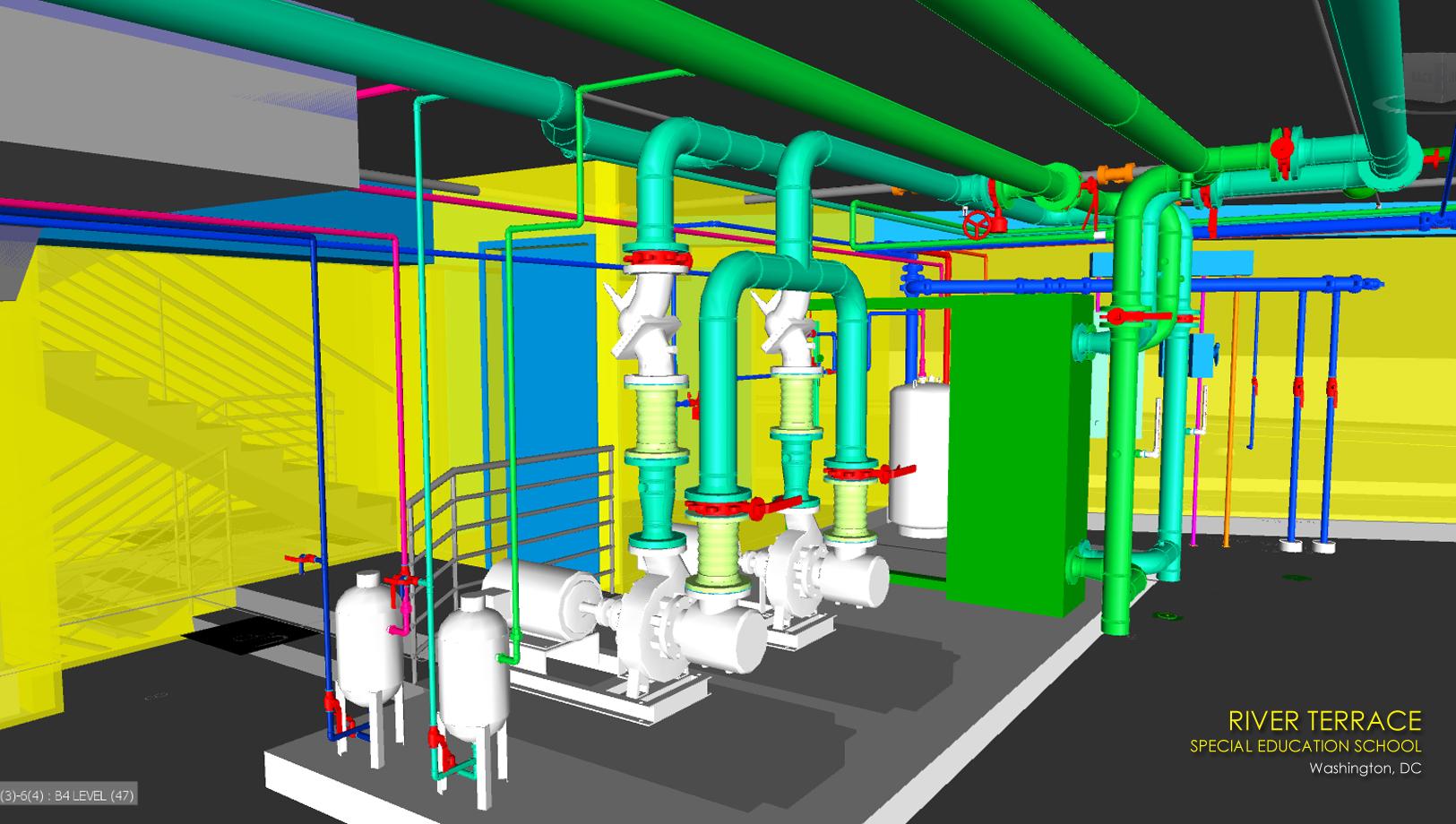9. Revit MEP model of Mechanical Ducts and Plumbing Pipes.